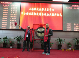 值此春光明媚、萬物復(fù)蘇的陽春三月,在享有“東方巴黎”之稱的上海,常州市松澤電器有限公司正式登陸上海股交中心平臺(tái)(企業(yè)代碼:204313),實(shí)現(xiàn)了與資本市場無縫式對接。以下就是本次盛事的全程報(bào)道: 2015年3月25日上午10:58,在歡快的授牌儀式進(jìn)行曲的伴奏下,常州市松澤電器有限公司總經(jīng)理顧千虎先生接過了授牌領(lǐng)導(dǎo)頒發(fā)的企業(yè)代碼牌,一同接過的還有授牌領(lǐng)導(dǎo)真摯的祝福。