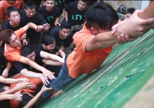 落日的余暉,吹響了我們勇攀畢業(yè)墻號角,小伙伴們雄赳赳,氣昂昂的來到4米2高墻面前,不借助任何輔助工具,通過人梯一行70多人,全部都翻越高墻,我們是松澤人,面對困難,我們不拋棄,不放棄,我們是一家人,即時坎坷但一個都不能少。