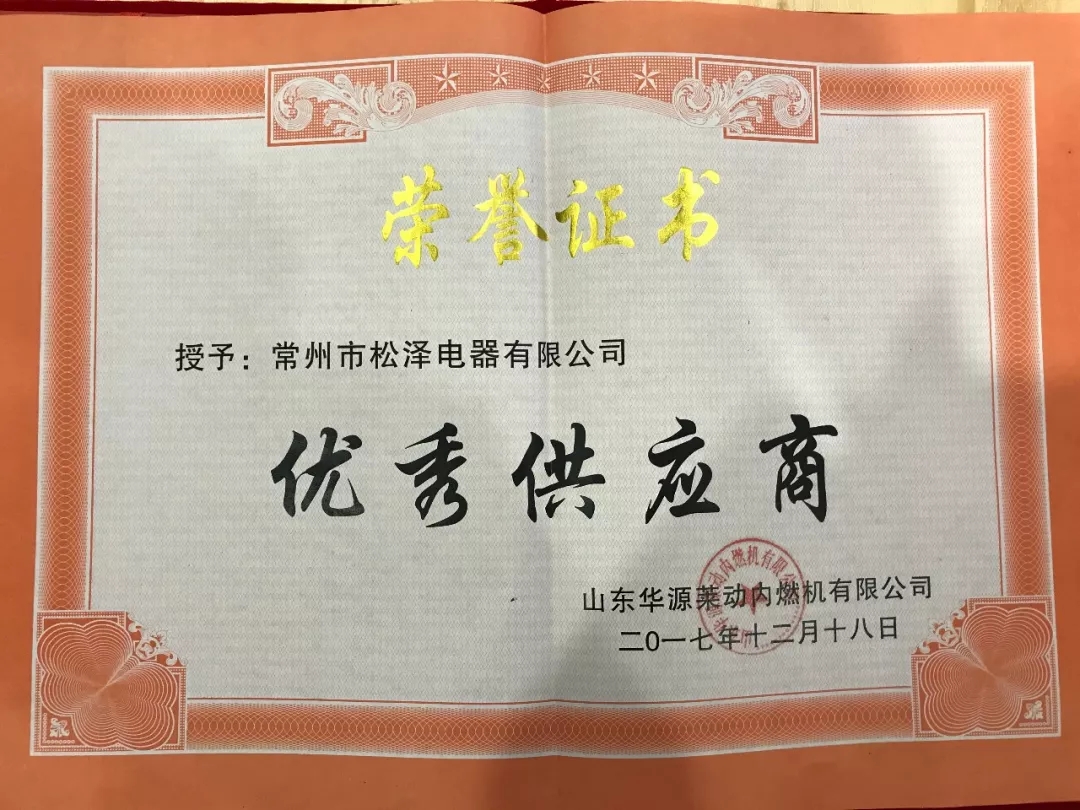 12月18日,山東華源萊動(dòng)內(nèi)燃機(jī)有限公司召開2017年供應(yīng)商大會(huì),會(huì)上常州市松澤電器有限公司憑借創(chuàng)新發(fā)展思維、堅(jiān)實(shí)的技術(shù)能力、卓越的交付質(zhì)量,榮獲“2017年優(yōu)秀供應(yīng)商獎(jiǎng)”,凸顯了常州市松澤電器在起動(dòng)電機(jī)領(lǐng)域的優(yōu)勢地位。