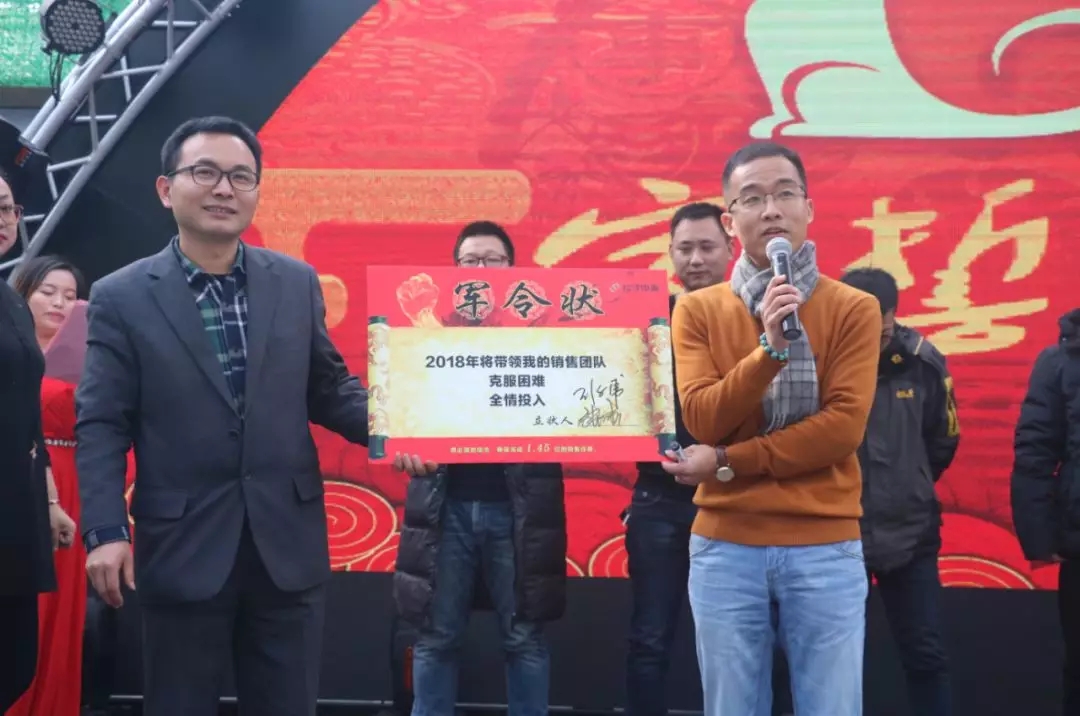 緊接著,進(jìn)行的是公司管理層接軍令狀的環(huán)節(jié),各部門領(lǐng)導(dǎo)當(dāng)場(chǎng)宣讀并簽字,以表決心。
