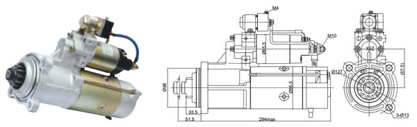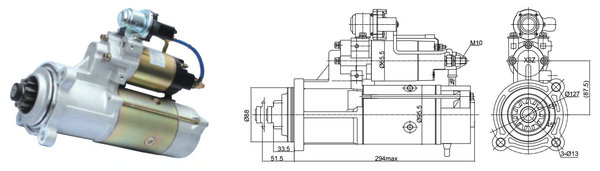 型號:SZQ21095018 規(guī)格:24V 7.5kW 特性:模數(shù):4 齒數(shù):11 配套機(jī)型:玉柴:6L、6M(50C端為兩針式插頭)